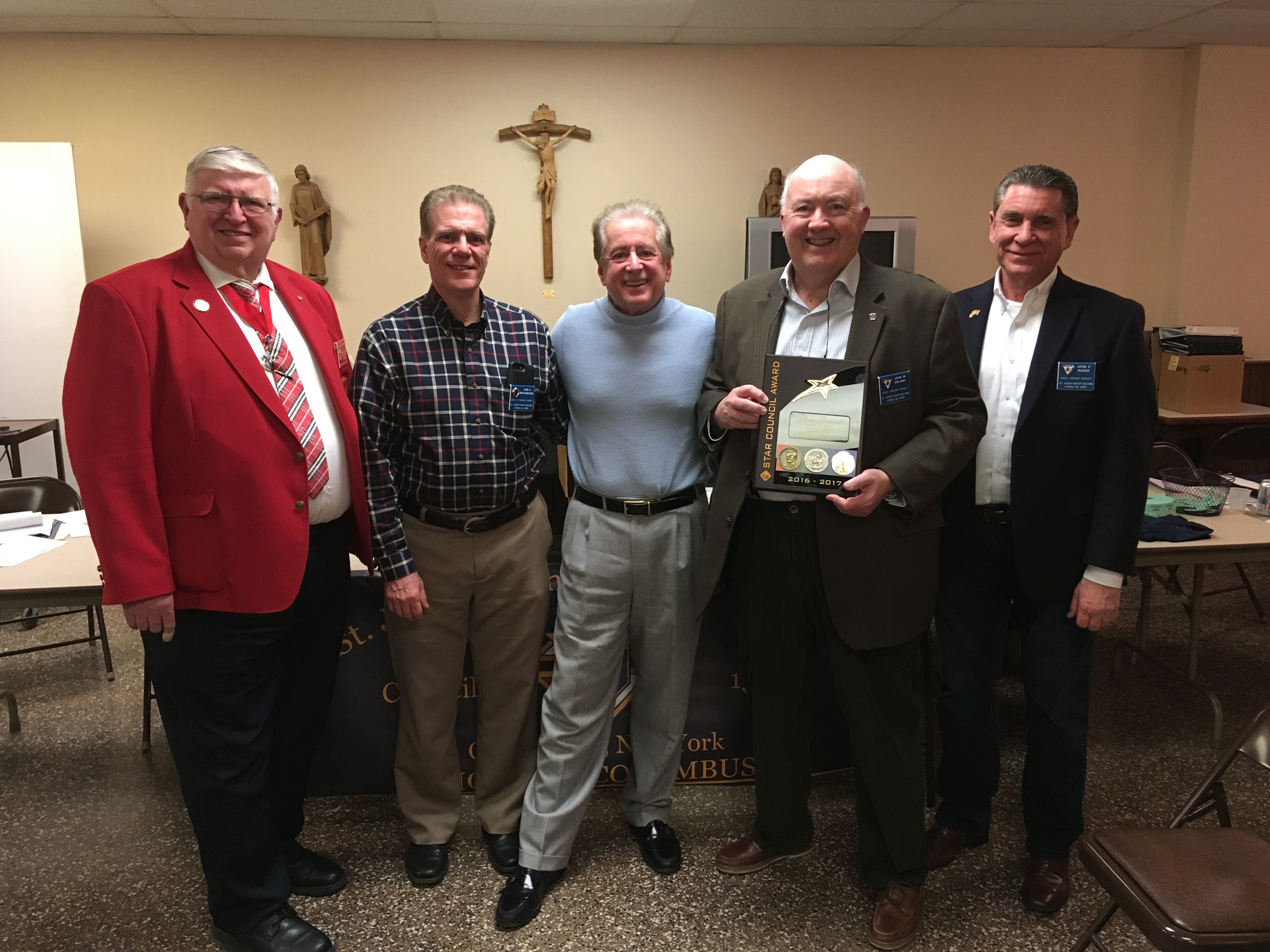 John Delany, PGK holds the Star Council Plaque 2016-2017 earned during his tenure. also pictured L-R are our District Deputy James Corrigan, DGK John Mastanduono, GK Robert Matarazzo, and PGK John Russo