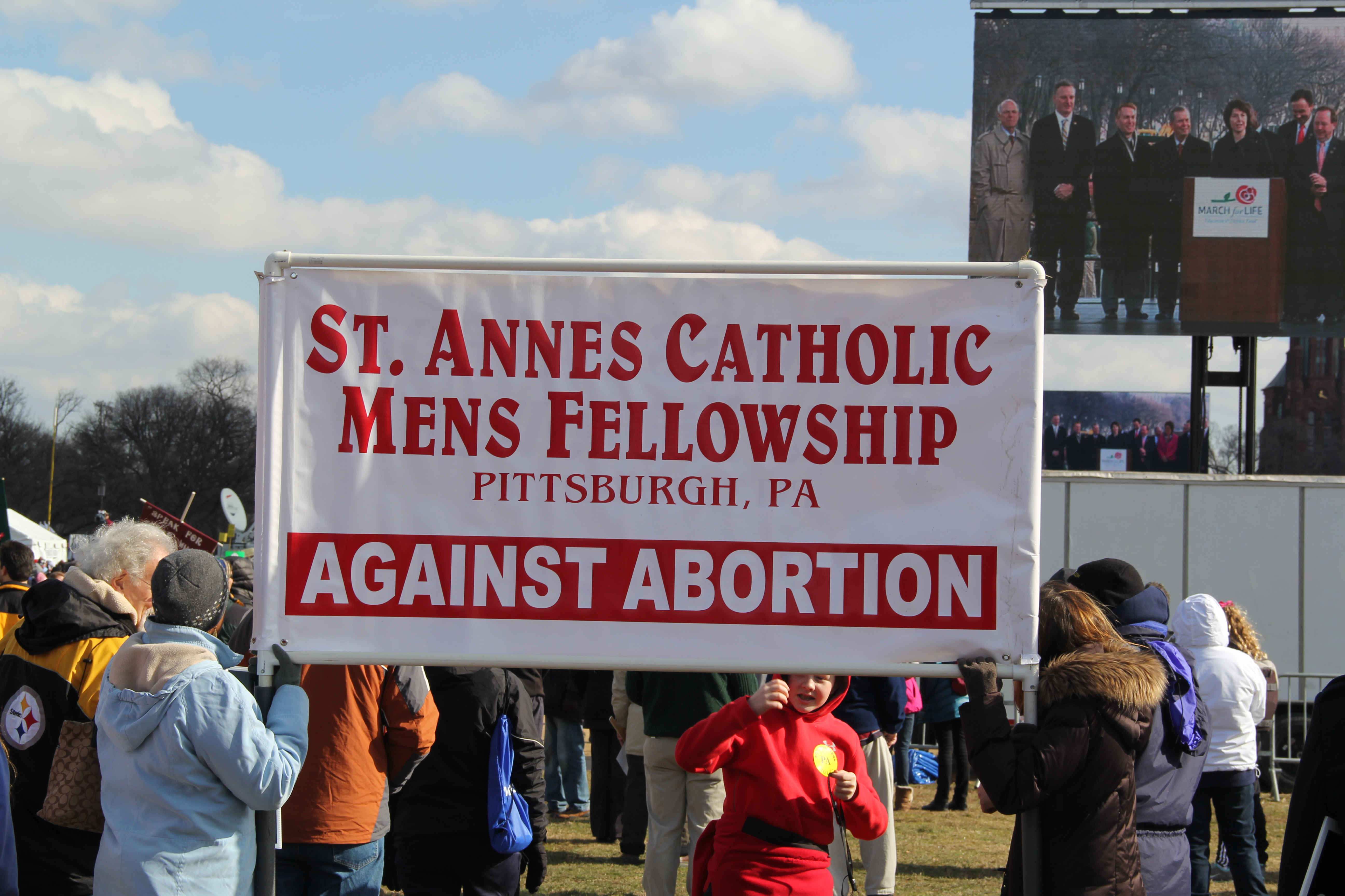 The massive March for Life crowd filled Constitution Avenue to capacity which overflowed onto the avenue’s sidewalks where Aja Nwaeke, John Russo and Donald McCabe found room to steer their banner up to Capitol Hill.