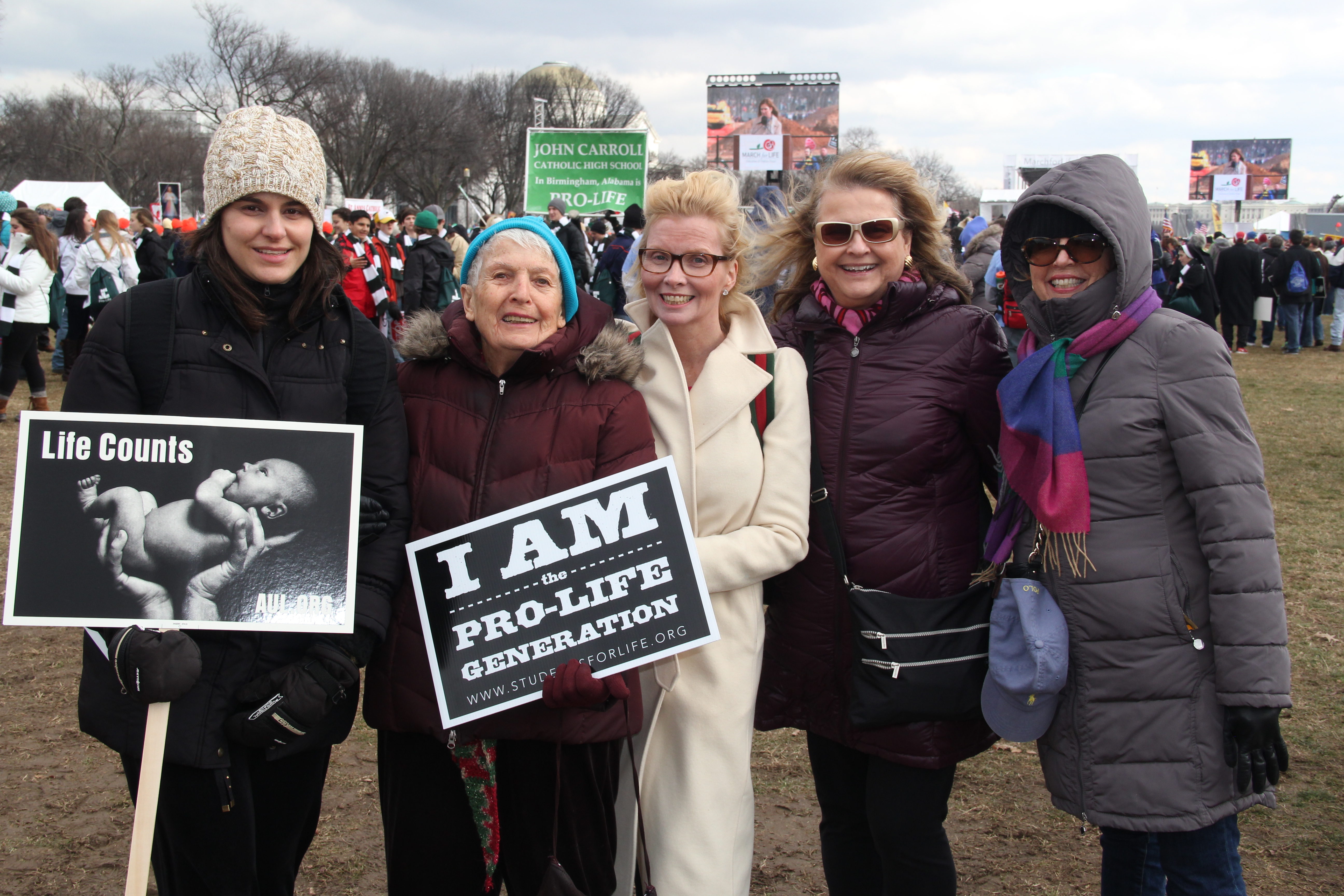 Hanna O’Neill, Mary Kate O’Sullivan, Victoria Rouse, Cathy O’Sullivan, and Lorraine Levano bear witness for the pre-born babies.